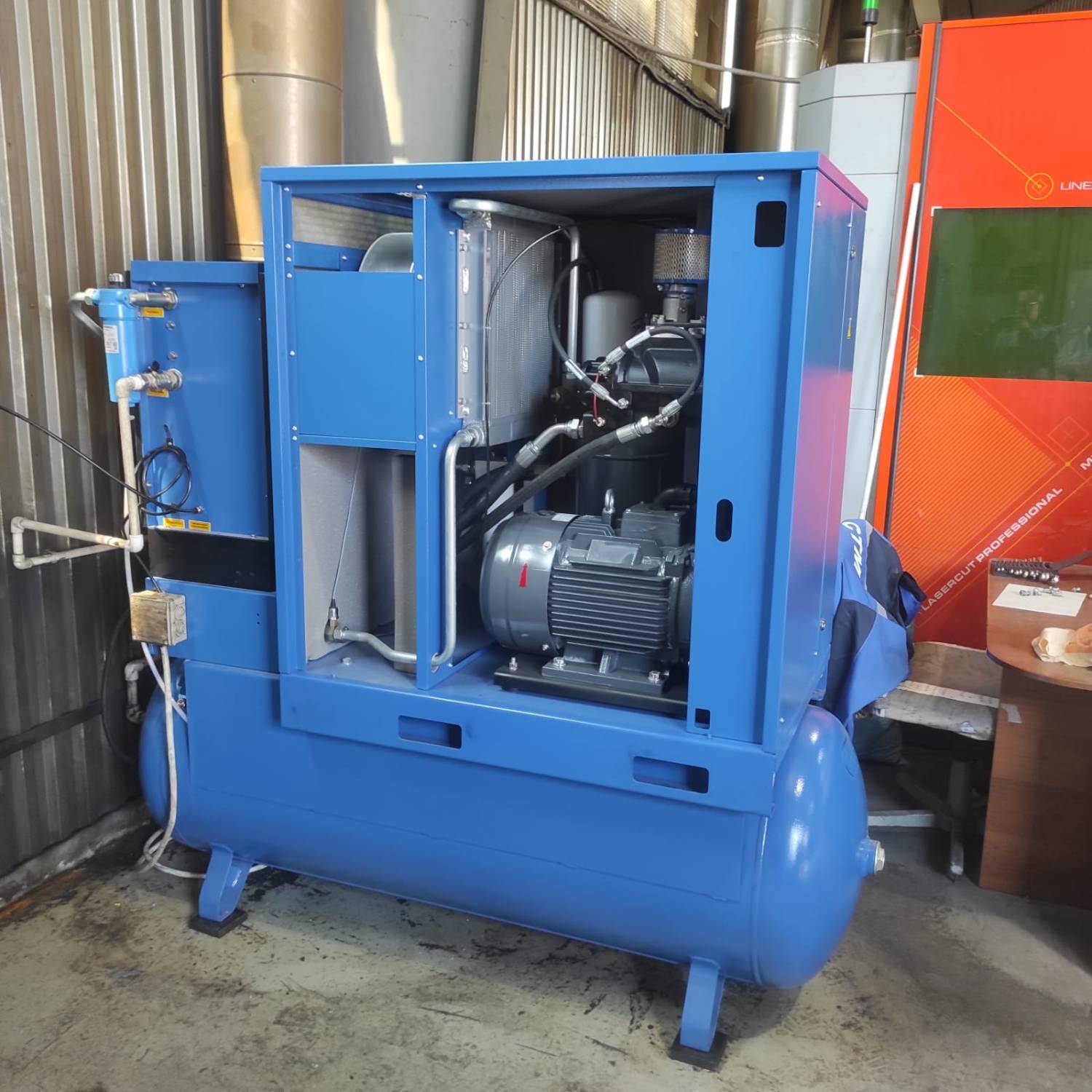 Как правило, данный компрессор пользуется большой популярностью у заказчиков, осуществляющих производственные процессы по лазерной резке. Давление компрессора - до 15 бар, производительность до 1600 л/мин. Данный компрессор оборудован ресивером на 500 литров и осушителем воздуха.